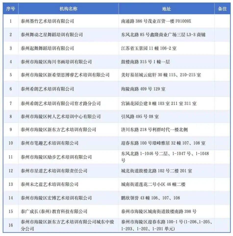 海陵区公布三月份非学科类校外培训机构“白名单”