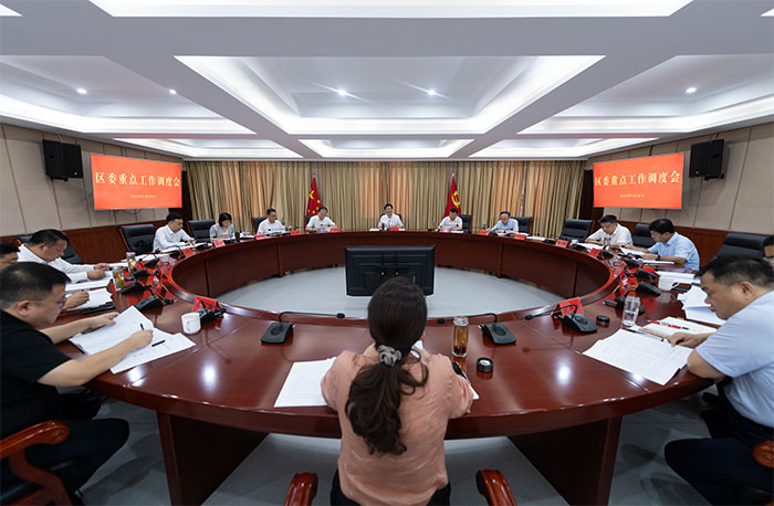 9月29日上午,区委重点工作调度会召开,深入分析当前经济形势,研究部署下一阶段重点工作,动员全区上下进一步统一思想、凝聚共识、加压奋进,以决战决胜的姿态冲刺四季度、夺取全年红,确保高质量完成年度各项目标任务,为全市发展大局扛起主城担当、作出更大贡献。区委书记刘剑波主持会议并讲话。区委副书记、区长夏爱东进行工作点评。