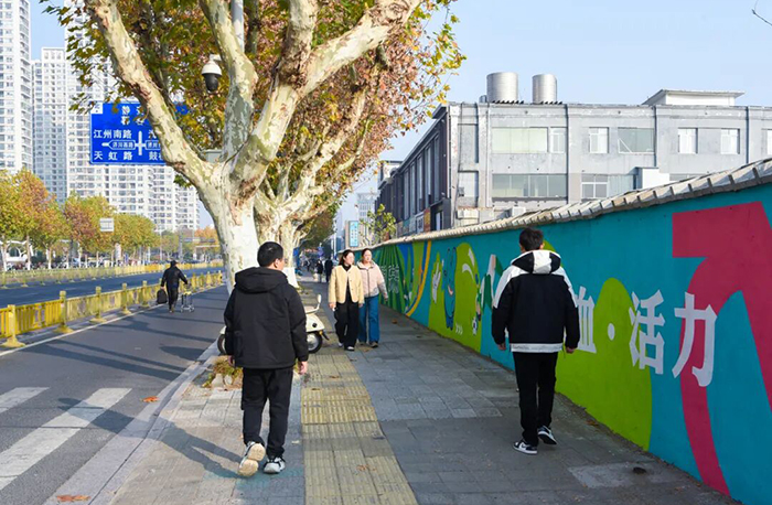 值得一提的是,彩绘墙的最大亮点是“苏超”动感卡通形象与城南本土IP“南南”的首度同框,既兼具视觉萌感,又成功打通了城市赛事精神与街区本土文化的深层连接,让体育激情与人文温度在墙面上交融共生。