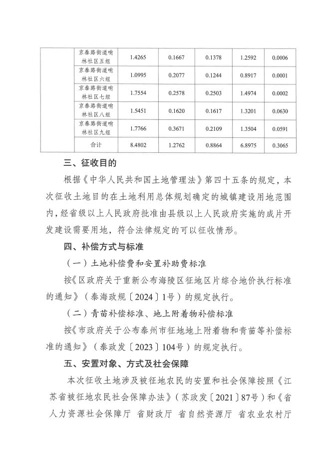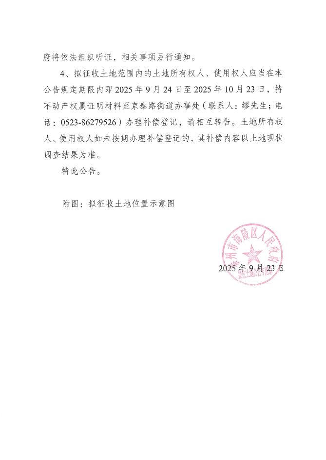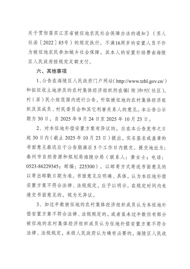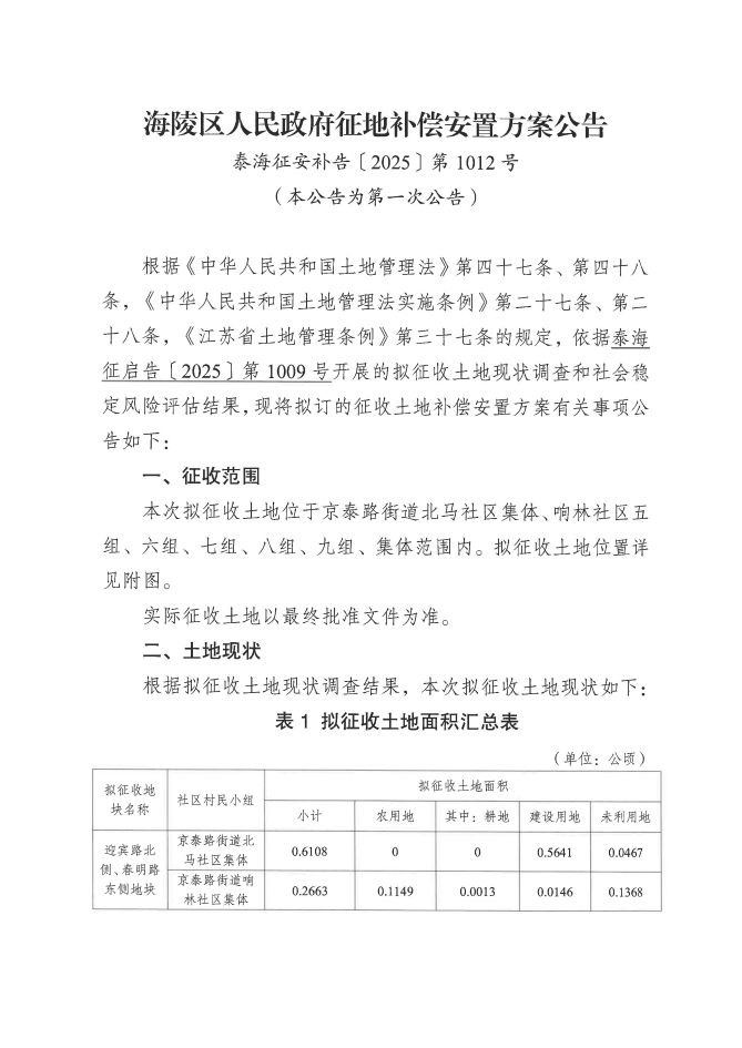 海陵区人民政府征地补偿安置方案公告(泰海征安补告〔2025〕第1012号)