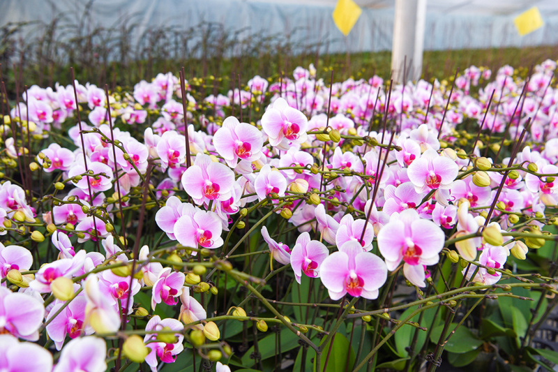 据了解,今年基地共培育蝴蝶兰8万盆,种有“粉钻”“梦幻女郎”“红玛瑙”“安娜”“大辣椒”“黄金甲”“甜格格”等品种。销售渠道分为零售和批发,当前批发主要销往南京、上海等周边城市。为满足不同客户的个性化需求,基地还配备了专业师傅为蝴蝶兰提供造型服务。