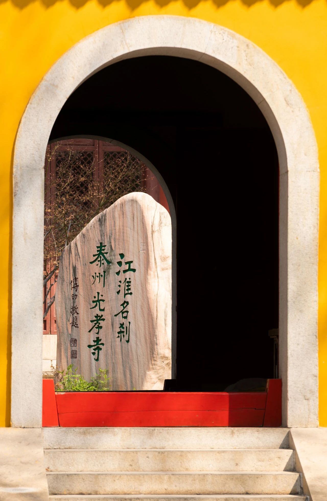 光孝律寺之所以能成为“江淮名刹”,与其培养出的众多高僧密不可分。鼓亭边屹立着一块石碑,上有泰州籍高僧性空法师题字:名僧摇篮。