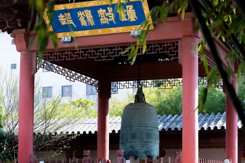 天王殿前悬有一口南唐铜钟,建于南唐时期(937—975年),以青铜铸成,重2500公斤,传为泰州永宁宫遗物(永宁宫系五代十国时期吴国国主杨行密于海陵所建的行宫)。南唐铜钟造型精巧,古雅匀称,庄重壮观,与丹阳唐钟、淮安金代铜钟、南京明代铜钟一起被誉为江苏省四大铜钟。它是海陵区唯一被列入省级保护的单件器物,是泰州城史的见证。