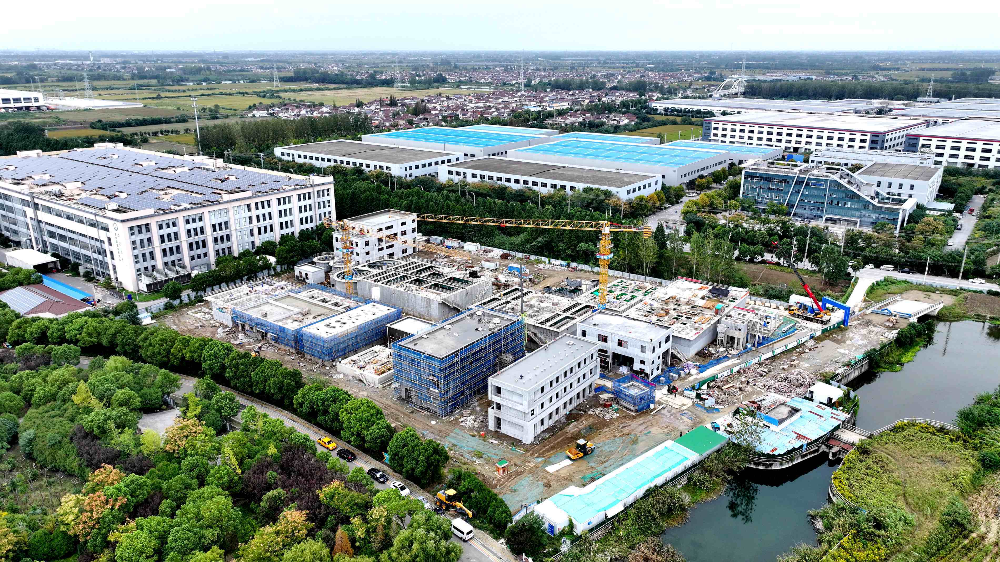 工程车辆穿梭往来,塔吊巨臂起伏转动……10月20日,泰州市九龙污水处理厂二期工程现场,大型机械的轰鸣声、金属构件的碰撞声、施工人员的指令声交织在一起,奏响了一曲激昂的民生保障奋进乐章。