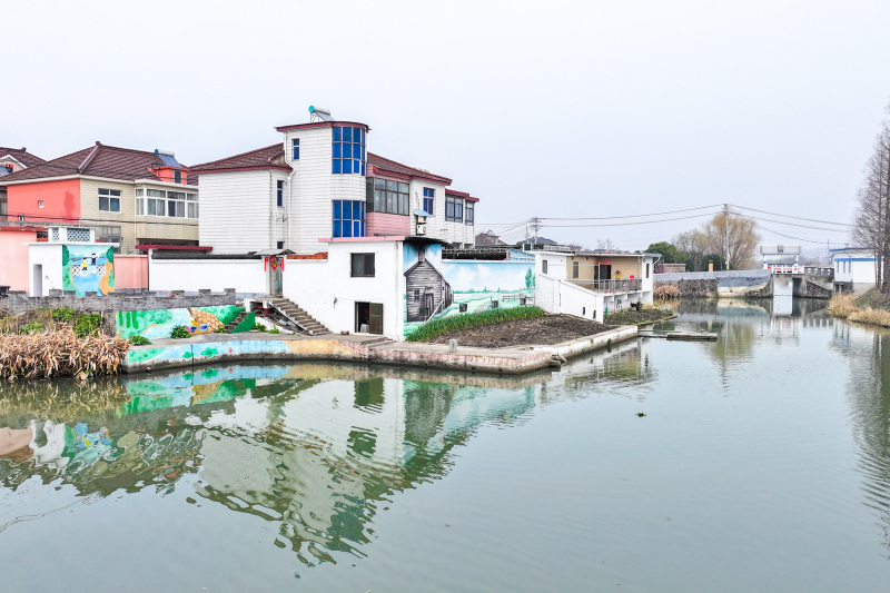 丁冯村依老盐河而建,村内水网密布、民居错落。村里结合村民需求因地制宜提升人居环境:用青砖、瓦片、石材等材料美化散水坡、砌筑花坛、摆放设施,营造滨水院落的古朴质感;为普通民居外立面做真石漆出新,点缀村庄特色彩绘;将废沟塘改造成停车场、边角地变身小游园、闲置房盘活为丁冯大礼堂。