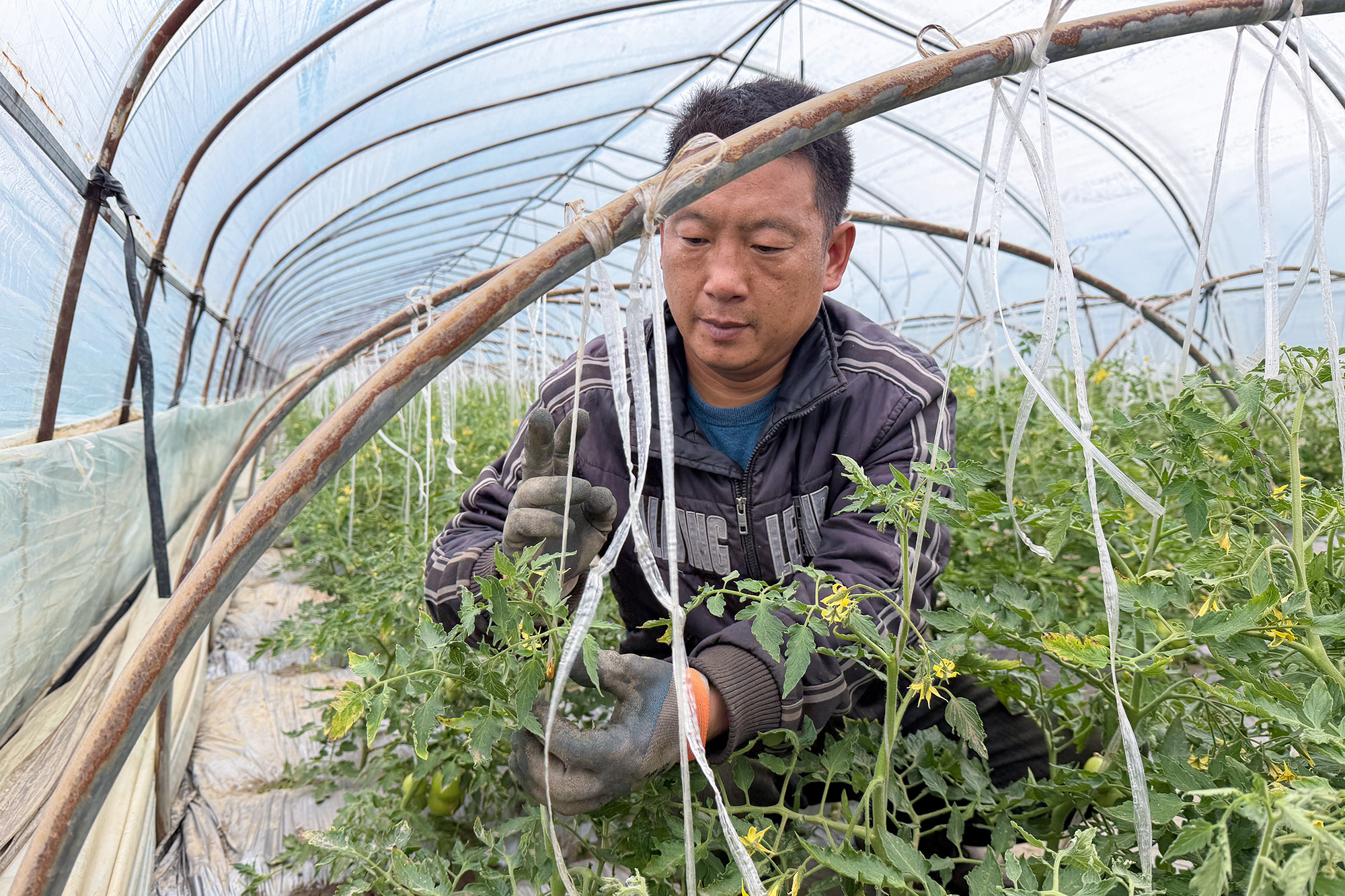 3月12日,走进丁冯村的蔬菜大棚,番茄、丝瓜长势喜人。菜农王敦新打理着51个蔬菜大棚,预计4月就可以开始收获果蔬。“现在按时养护就能稳产稳收。”王敦新笑着说,以前卖菜跑断腿,现在坐在大棚里等收购,人轻松多了,今年打算再扩建两个大棚!