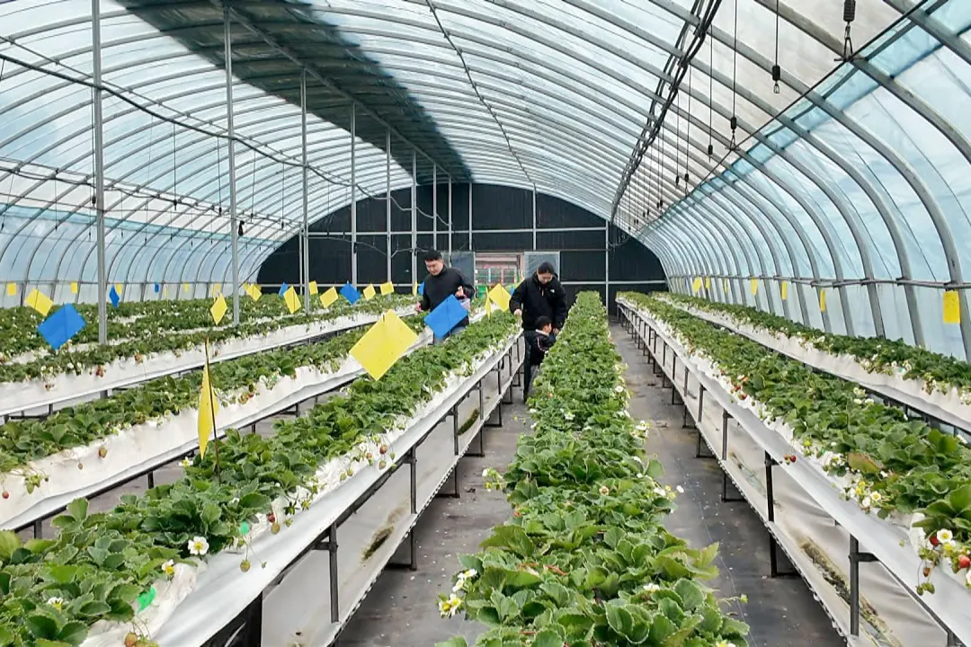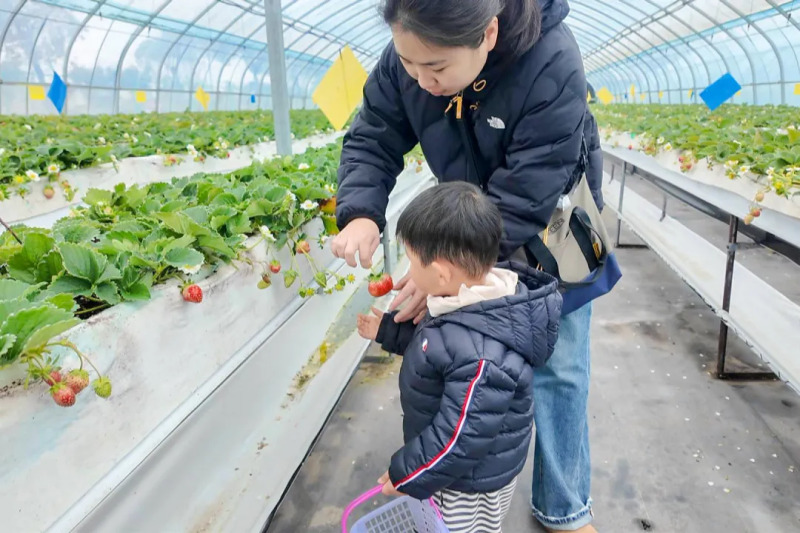 眼下,海陵空中草莓迎来成熟上市关键期,夏郑空中草莓园、苏中园艺草莓园两大园区各展所长,一颗颗新鲜多汁的草莓不仅俘获了市民的味蕾,更成为亲子周末休闲的热门打卡地。 走进夏郑空中草莓园,高架栽培槽上的草莓藤叶郁郁葱葱,鲜红饱满的果实点缀其间,惹人喜爱。尽管头茬草莓已进入成熟尾声,但依旧吸引着大批亲子家庭慕名而来。家长们带着孩子穿梭在藤架间,无需弯腰便可轻松采摘;孩子们捧着小篮子,认真挑选着心仪的草莓,园内欢声笑语此起彼伏。 “这是我们第三次来这个草莓园摘草莓了,这里的草莓品种丰富,口感还特别好。园区环境干净整洁,还有专门的儿童游玩区域,既可以采摘草莓,又能陪孩子玩耍。”市民徐嵘笑着说道。 据了解,夏郑空中草莓园占地面积约6亩,今年共栽种了“红颜”“香野”等7个市场受欢迎的草莓品种,不同品种风味各异,满足了消费者的多样化需求。 “我们的草莓在去年11月中旬上市,周末人流量会更多一些,最高峰时能达到100人。二茬草莓大概还有半个月就能成熟,整个草莓采摘季会一直延续到今年4月底。”该园负责人徐洪介绍。 与夏郑空中草莓园浓厚的亲子氛围不同,苏中园艺草莓园则以多样的种植模式和自主育苗技术彰显特色。园区内广泛采用基质槽、椰糠条等无土栽培方式,还创新推出盆栽式空中种植,既提升了草莓的品质,又方便市民采摘。更值得一提的是,这里的草莓苗全部由企业自主培育,从源头把控品质。 “每年5月份,我们会选取优质母株的匍匐茎顶端,送到组培室培育成脱毒种苗,10月份再进行定植。”苏中园艺草莓温室管理员徐秀琴介绍,这样培育出来的草莓苗,抗病性更强,种植成本更低,结出的草莓果形规整、含糖量高,口感也更出众。 自主育苗模式不仅让培育出的种苗更适配本地的生长环境,还有效规避了外购种苗的运输损耗与溢价成本,为园区的可持续发展奠定了坚实基础。 当前,正值头茬草莓采摘尾声、二茬草莓即将上市的交替期,海陵区的空中草莓园既为市民提供了冬日尝鲜和休闲娱乐的好去处,也为本地特色高效农业的发展提供了可复制、可借鉴的优质样本。