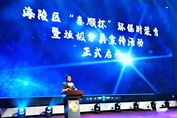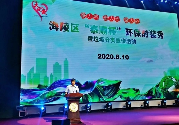 这场由泰州市文明办、泰州市民政局、共青团泰州市委指导,海陵工业园区(京泰路街道)、海陵区文明办、海陵团区委、海陵区司法局等多部门联合主办,泰州市大城小爱公益服务中心、泰顺社区、银泰物业等联合承办的“党建引领新时尚,垃圾分类我先行”海陵区“泰顺杯”青少年环保时装秀暨垃圾分类宣传活动吸引了近300人参加。