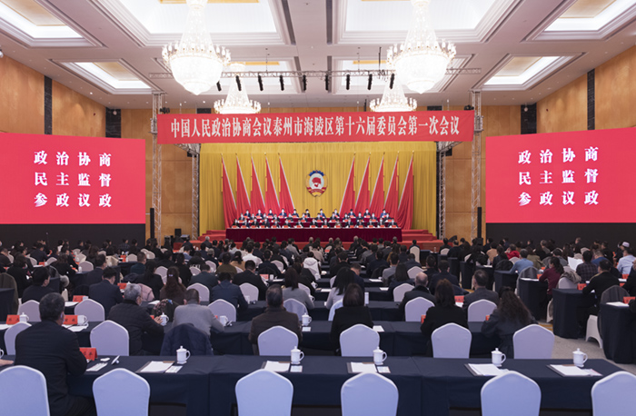 今天下午,政协泰州市海陵区第十六届委员会第一次会议圆满完成各项议程,胜利闭幕。孙群、刘剑波、丁和扣、刘玲、崔国庆、孔令明、朱爱俊、张怀德、周宏林、周来荣、刘金桂、葛鹏、卢弘、施庆、顾晓梅在主席台前排就座。