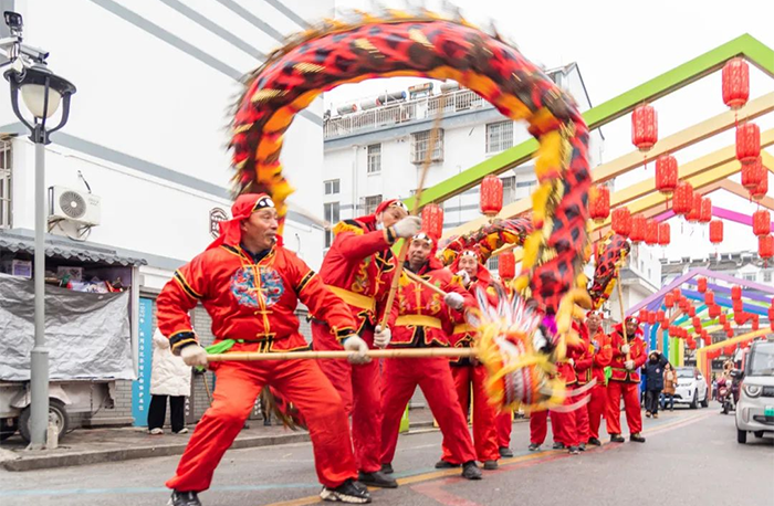 喇叭吹奏,锣鼓敲响,铜镲碰撞,一条红龙和两头活泼的醒狮在十胜街威武亮相,龙狮团成员们舞动一条红色长龙在街市上穿梭游走,吸引了不少市民游客驻足观看,活动正式拉开帷幕!“很震撼!我是从十胜街一直跟到钟楼巷的,然后来这边参加了很多游戏,节日氛围很浓。”市民陆开鹏开心地说。