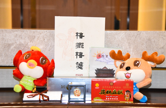 在市区金域维景酒店正门前,一道道泰马主题的注水道旗迎风飘扬。入口处,2024泰马主题展示板设计感满分,吸引了不少人驻足打卡,巨幅马拉松公益广告氛围感爆棚。值得一提的是,参赛选手抵达酒店办理入住时,出示中签短信或参赛号码布,即可收获由海陵区精心准备的“暖心大礼包”,包含非遗特色产品、非遗篆刻作品、梅兰芳文创纪念品、海陵旅游地图等具有海陵特色的文创产品。