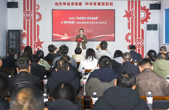 冬日暖阳映初心,理论宣讲润企行。12月24日,海陵区“凤城有理·理论直通车”暨“理响华港”文明实践轻骑兵进企业宣讲活动在江苏飞船股份有限公司举行。活动以“理论+实践”“故事+文艺”的形式,将党的创新理论与基层奋斗故事相结合,为企业职工代表带来了一场接地气、有温度、有力量的精神盛宴。