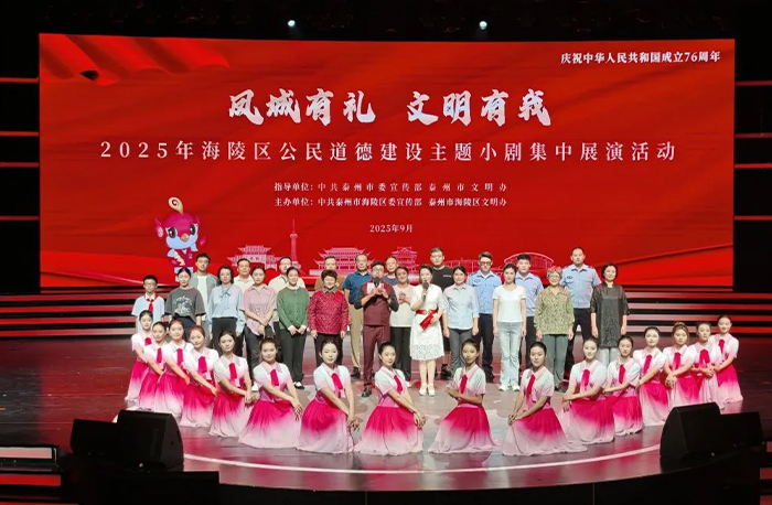 德润人心,行耀凤城。近年来,海陵区委宣传部、海陵区文明办聚焦新时代精神文明建设领域社会关注的热点话题,推出一批“公民道德建设主题小剧”,用群众身边发生的事教育身边人,让文明新风浸润海陵。9月28日,2025年海陵区“凤城有礼 文明有我”公民道德建设主题小剧集中展演活动举行。一幕幕源自生活、贴近群众的精彩剧目,直叩观众心扉,生动展现了海陵公民道德建设的蓬勃生机与温暖力量。