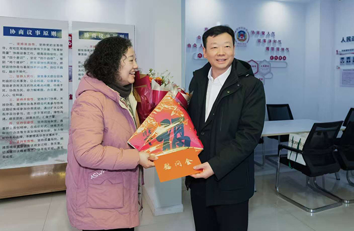 2月10日,区委书记刘剑波,区委副书记、区长夏爱东带领相关部门负责同志,深入基层开展春节前走访慰问活动,亲切看望慰问了我区部分专家人才、困难党员、道德模范及离退休老干部等,向他们致以诚挚问候和新春祝福,送去党和政府的温暖与关怀。
