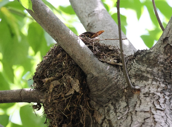 左图为孵化中的乌鸫,右图为哺育中的灰喜鹊